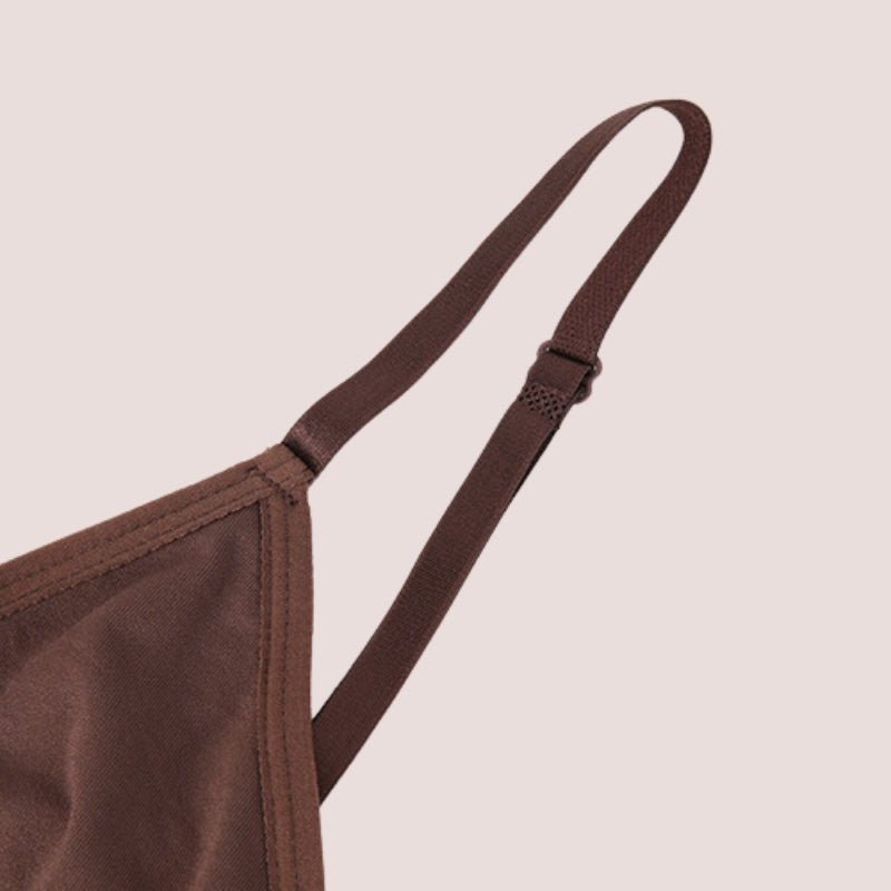 Possui design tanga, para aquelas que preferem maior cobertura no bumbum.